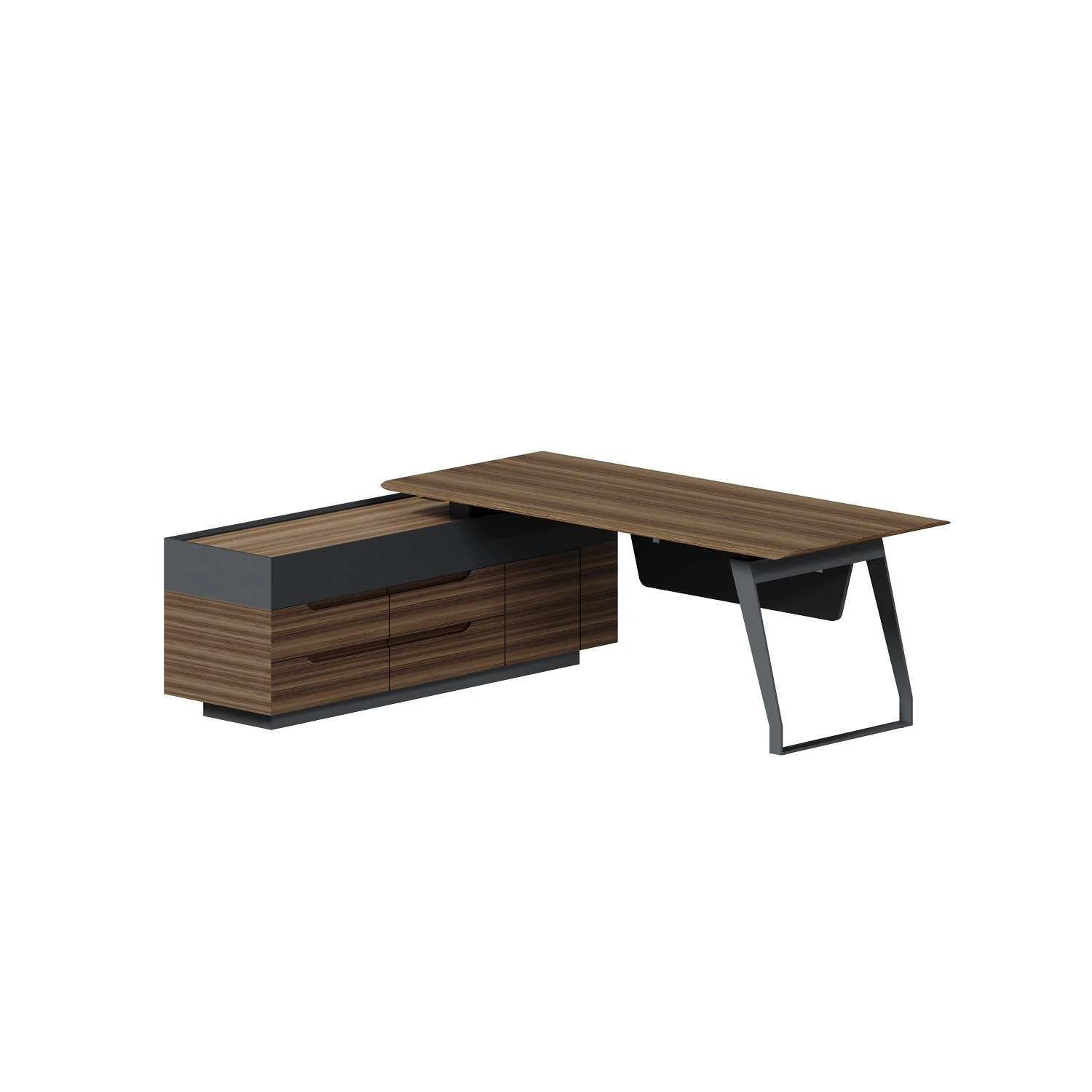 Стол руководителя на опорной тумбе левый QZ.0101.BW + QZ.0201.BW.GF.R 2223-002