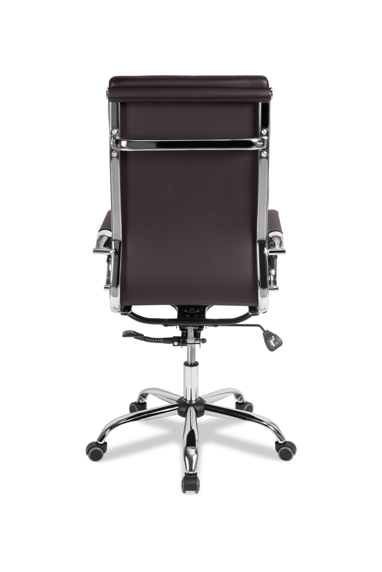 Конструкция: Механизм качания с регулировкой под вес и фиксацией в любом положении Регулировка высоты (газлифт) Каркас металлический хромированный Подлокотники хромированные с накладками Материал обивки: кожа PU Цвет: коричневый Ограничение по весу: 120 кг