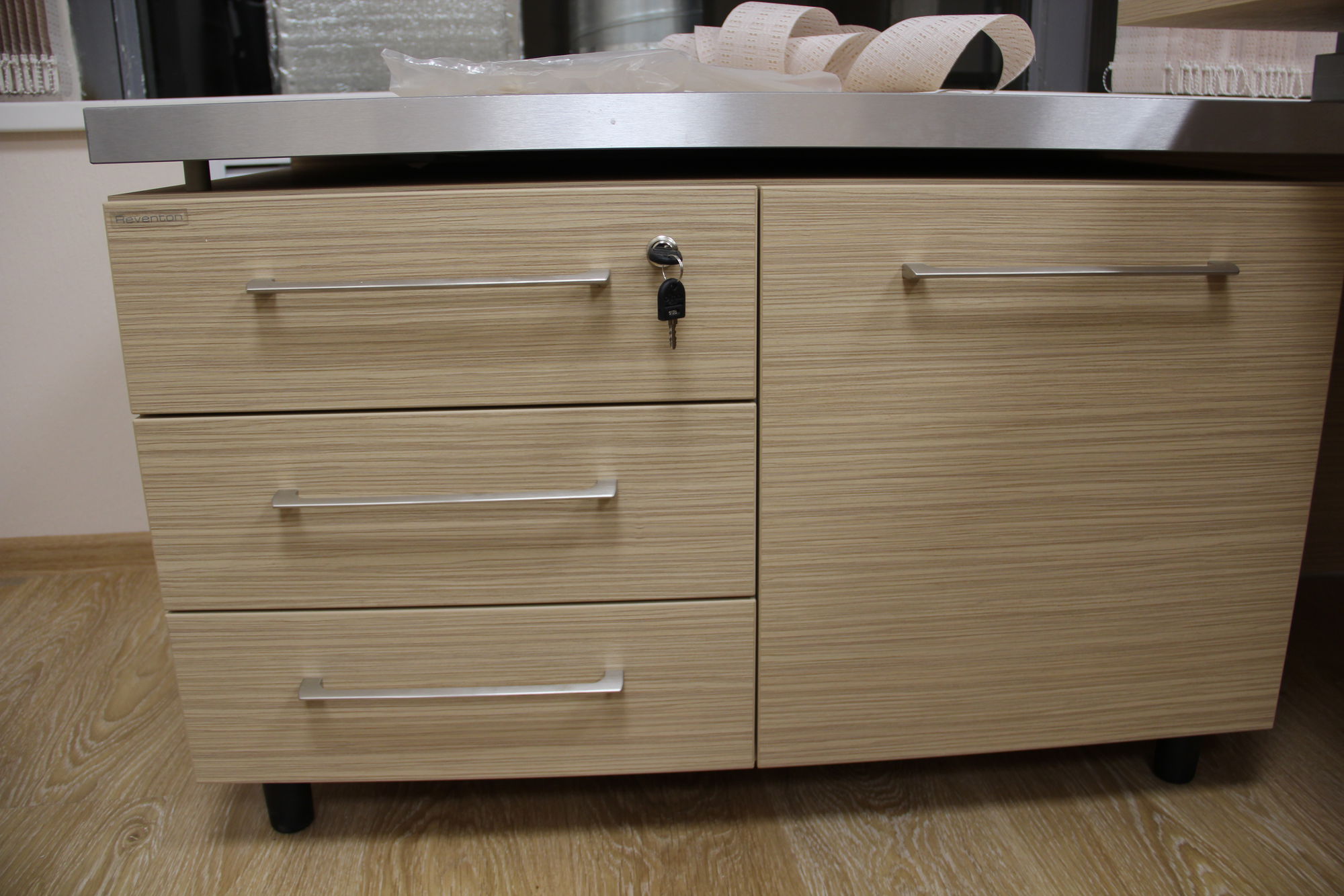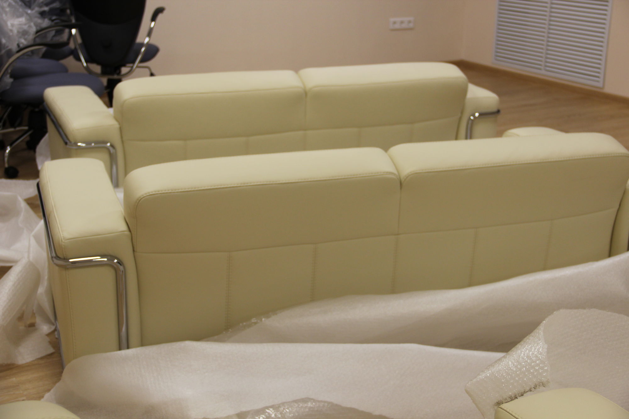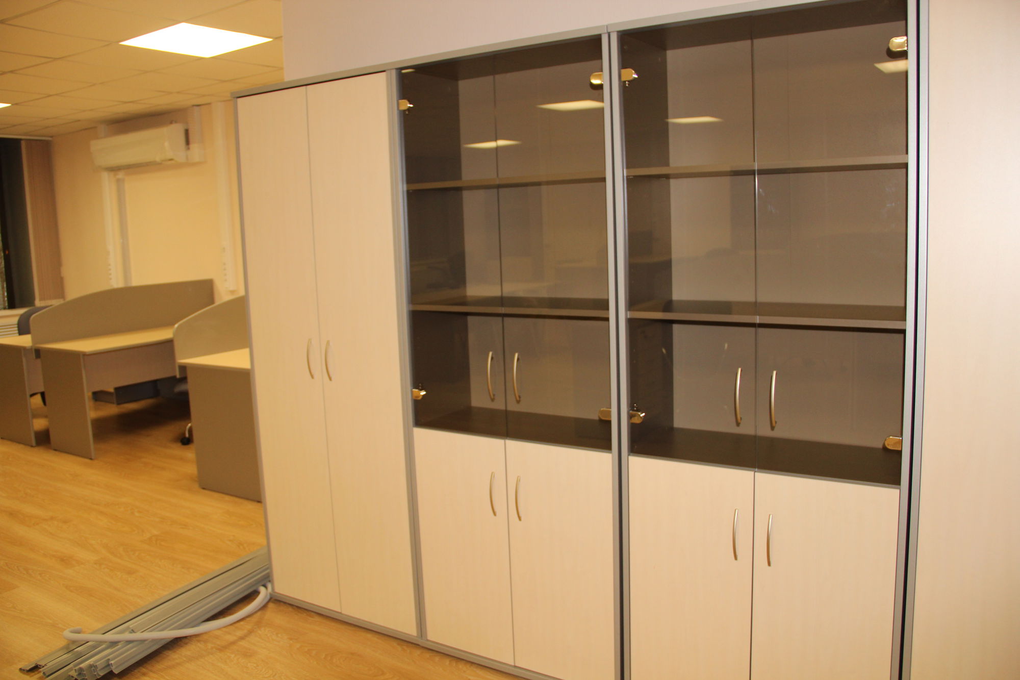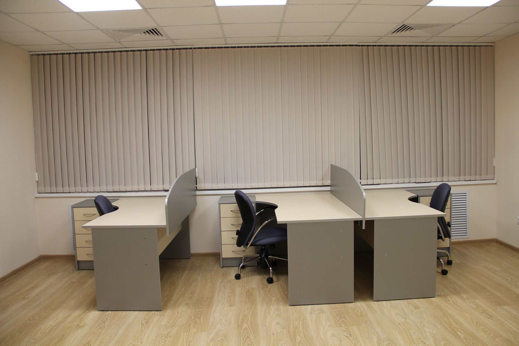 Произведена отгрузка и сборка более 70 рабочих мест для сотрудников офисной мебели Имаго (клен-металлик) белоруской фабрики Скайлэнд, кресла фабрики Тайпит. Несколько кабинетов руководителя Ревенгтон, фабрики Сторосс. Организованы мягкие зоны из офисных диванов Бисмарк – изготовитель Кенигсберг. Переговорный стол I-meet (Италия). Собраны металлические стеллажи и шкафы для раздевалок фабрики Промет. А так же жалюзи всевозможных расцветок.