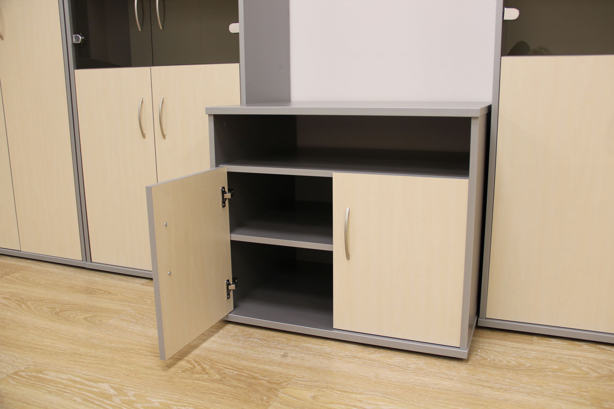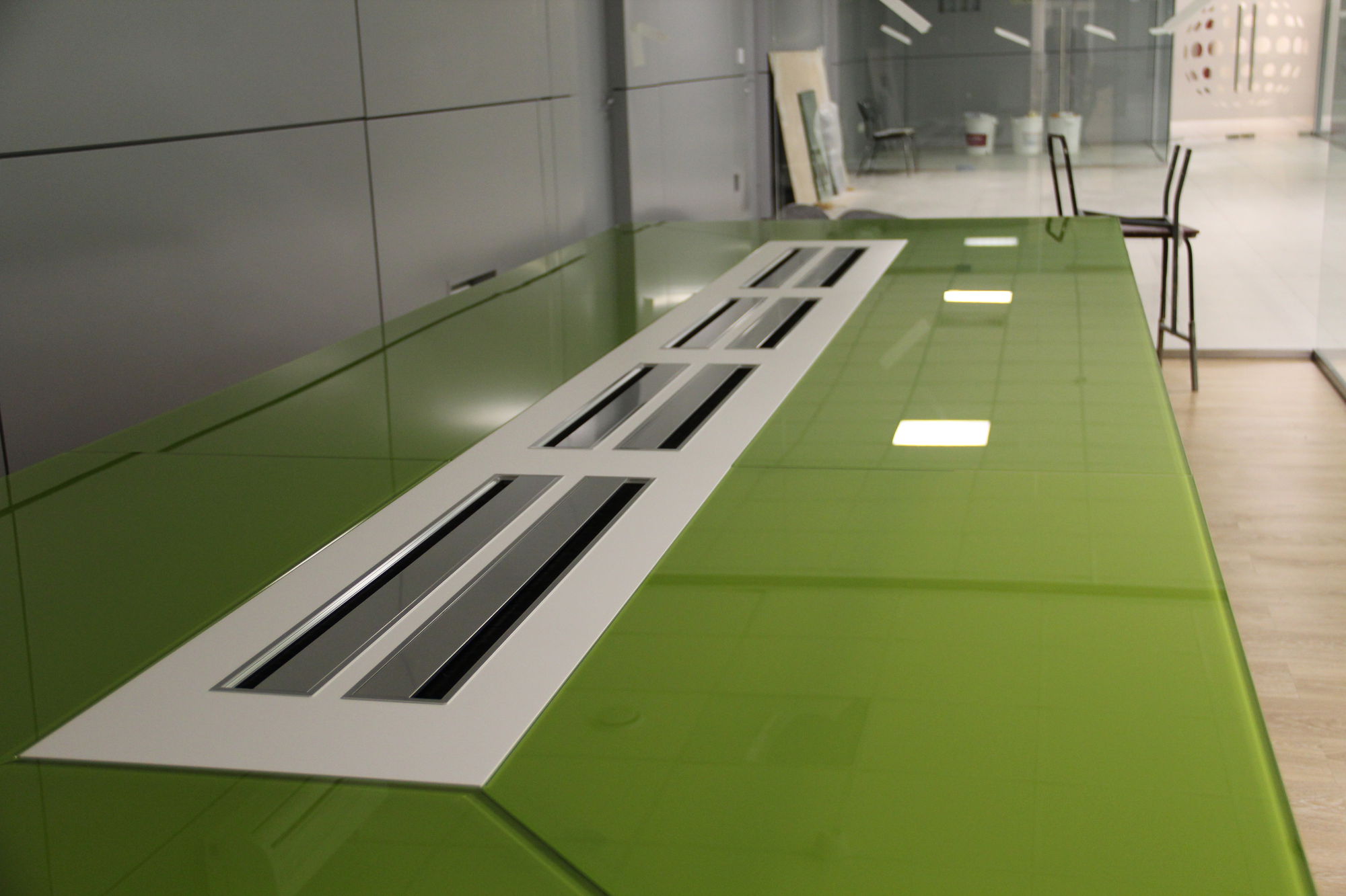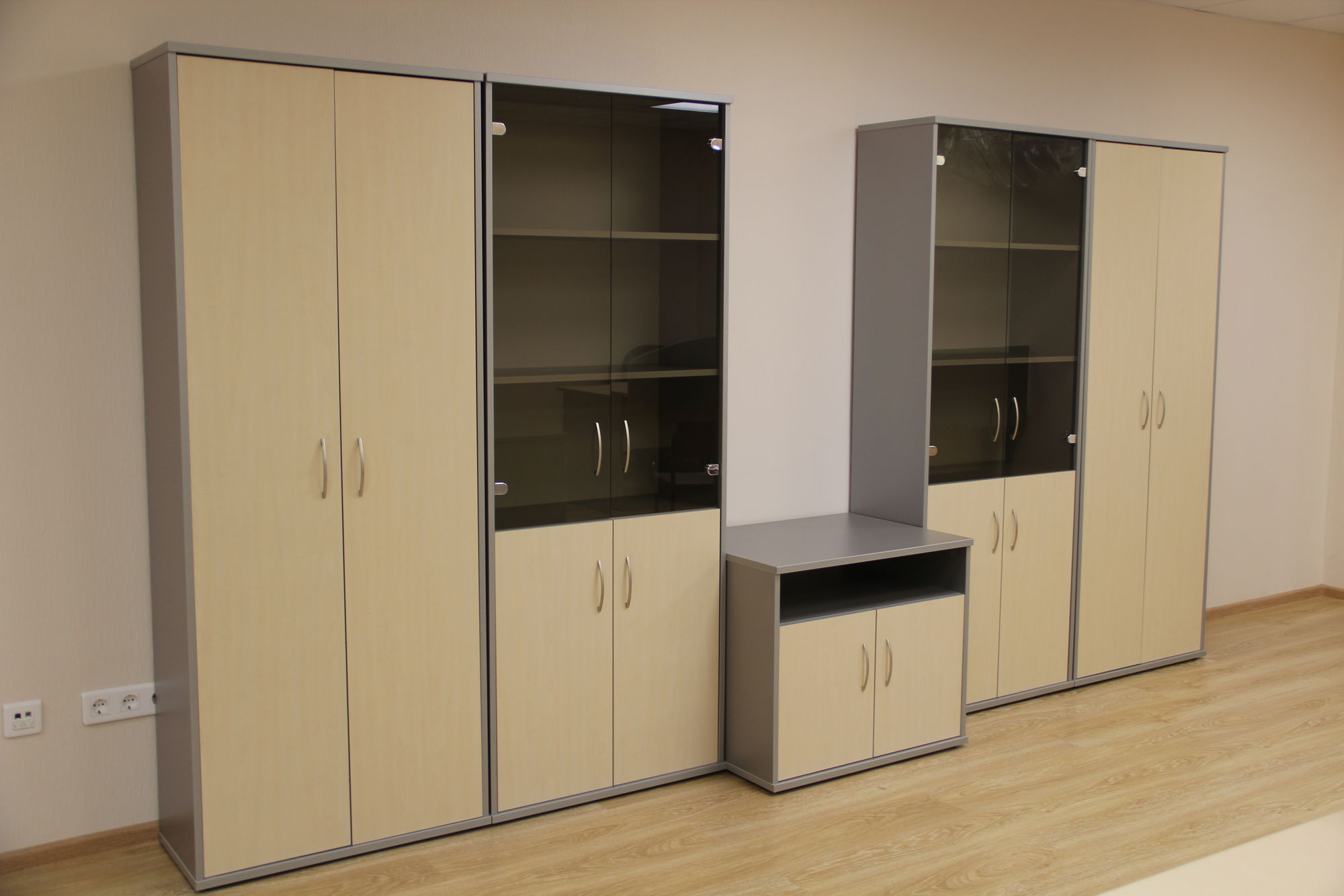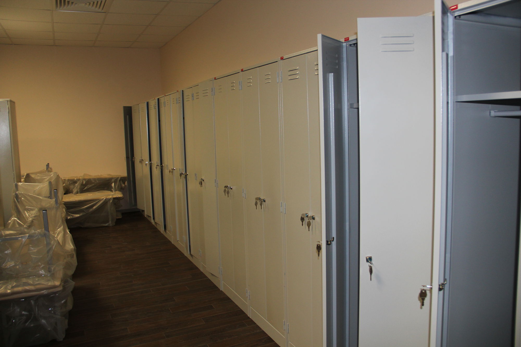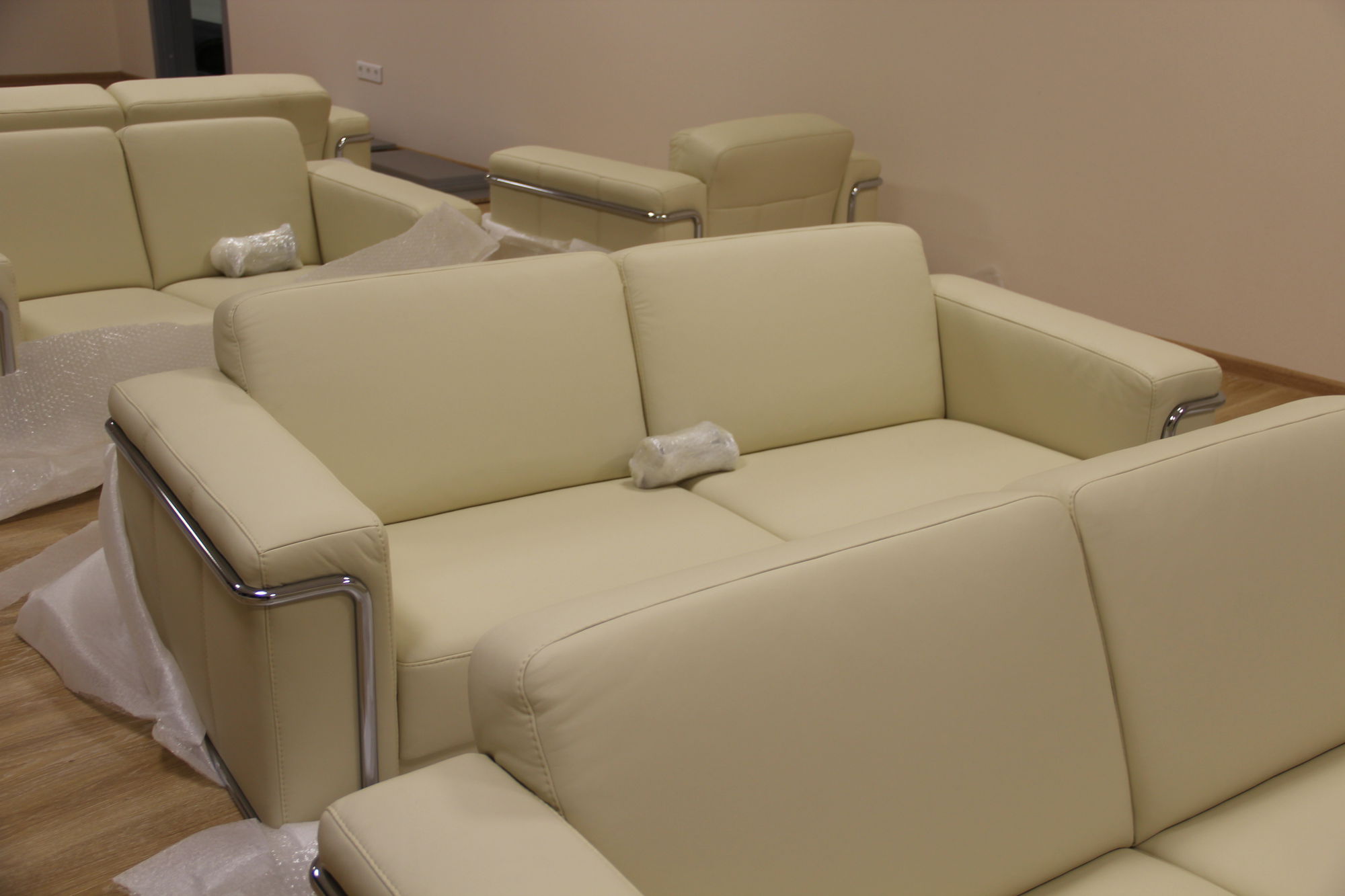 Произведена отгрузка и сборка более 70 рабочих мест для сотрудников офисной мебели Имаго (клен-металлик) белоруской фабрики Скайлэнд, кресла фабрики Тайпит. Несколько кабинетов руководителя Ревенгтон, фабрики Сторосс. Организованы мягкие зоны из офисных диванов Бисмарк – изготовитель Кенигсберг. Переговорный стол I-meet (Италия). Собраны металлические стеллажи и шкафы для раздевалок фабрики Промет. А так же жалюзи всевозможных расцветок.