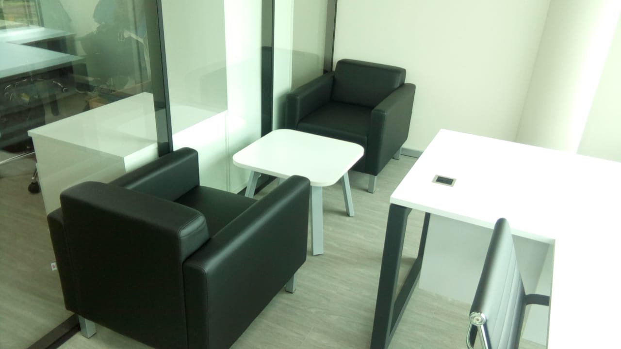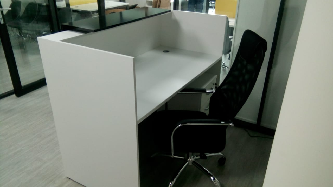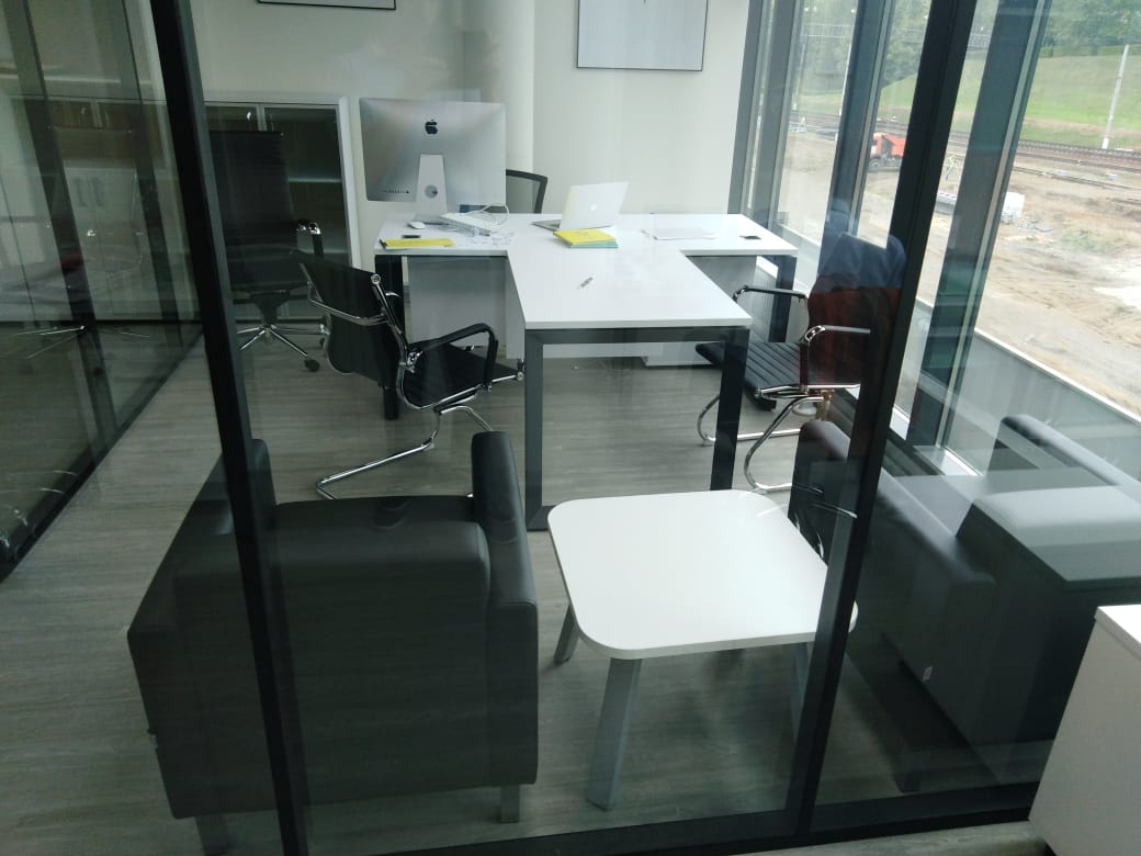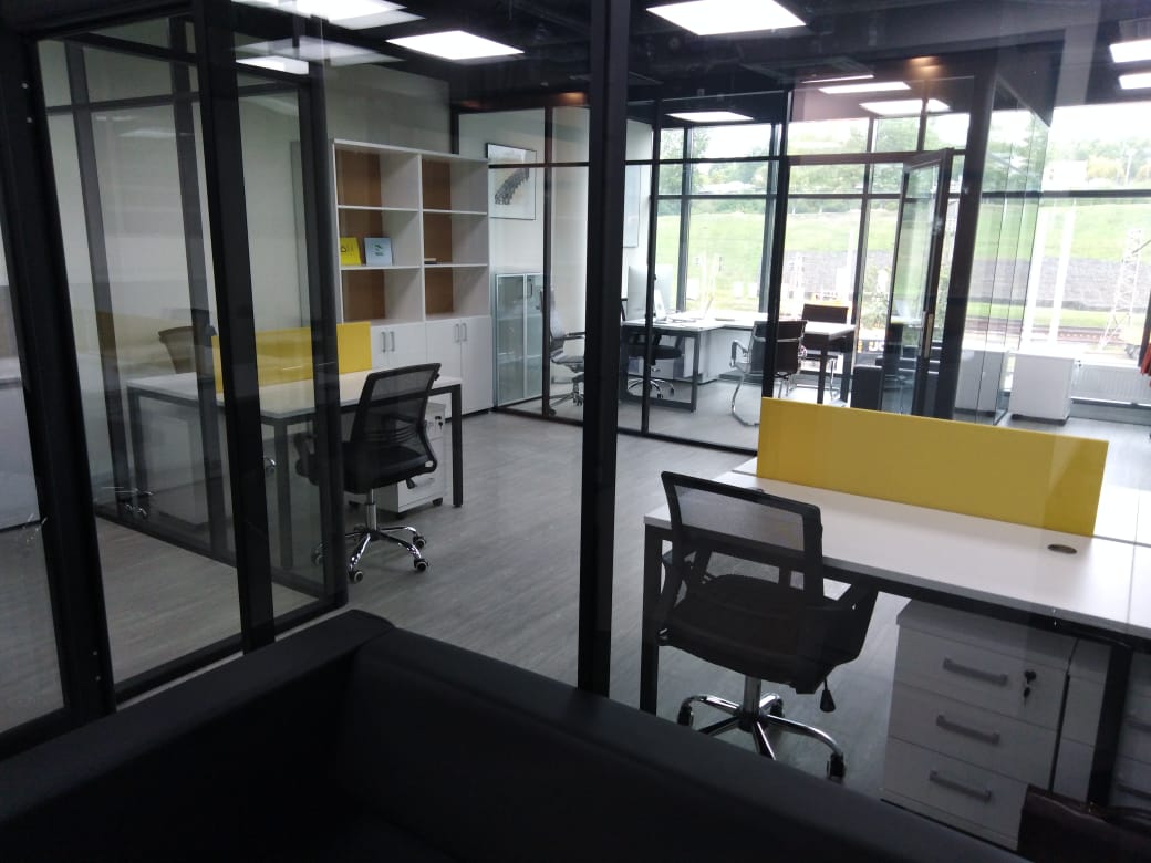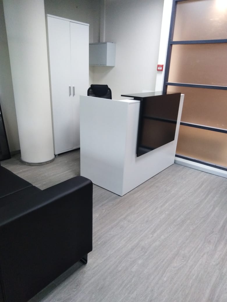Сотрудники "Альфа-М" предложили интерьер в чёрно-белом цвете. Мы использовали кабинет руководителя Onix Direct, мебель для переговорной комнаты Gloss из антрацита и металла. Однако такой дизайн нам показался немного скучным, и мы предложили добавить яркие акцент в виде мебели для персонала с лимонными экранами из серии Avance. В холле расположилась стойка ресепшен Lounge с подсветкой, диваны и кресла для посетителей "Горизонт" и "Евро" соответственно от фабрики Евроформа. И финальным штрихом стали журнальный стол GDB. В целом, дизайн получился лаконичным, но с лимонной изюминкой.