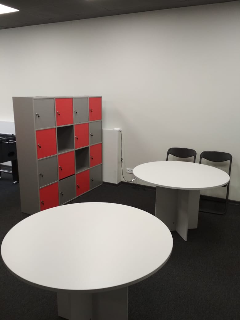 Предметы мебели от фабрики Riva изготовлены из высококачественного ДСП. Мы подобрали интересное сочетание оттенков фасада и корпуса изделий (серебристый и металлик/красный), что позволило создать уютную и комфортную обстановку в офисе. Стильные и яркие пуфы Альфа удачно вписались в интерьер помещения. Сотрудники смогут настроиться на рабочий процесс, не отвлекаясь на лишние детали. Ведь все необходимое для работы будет под рукой.