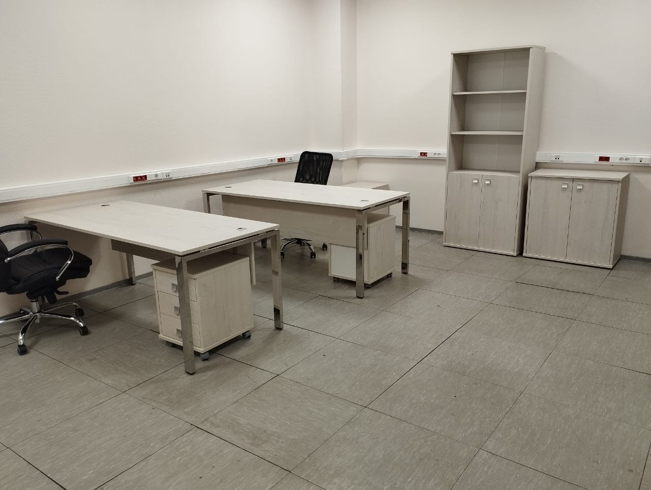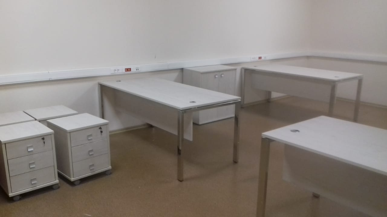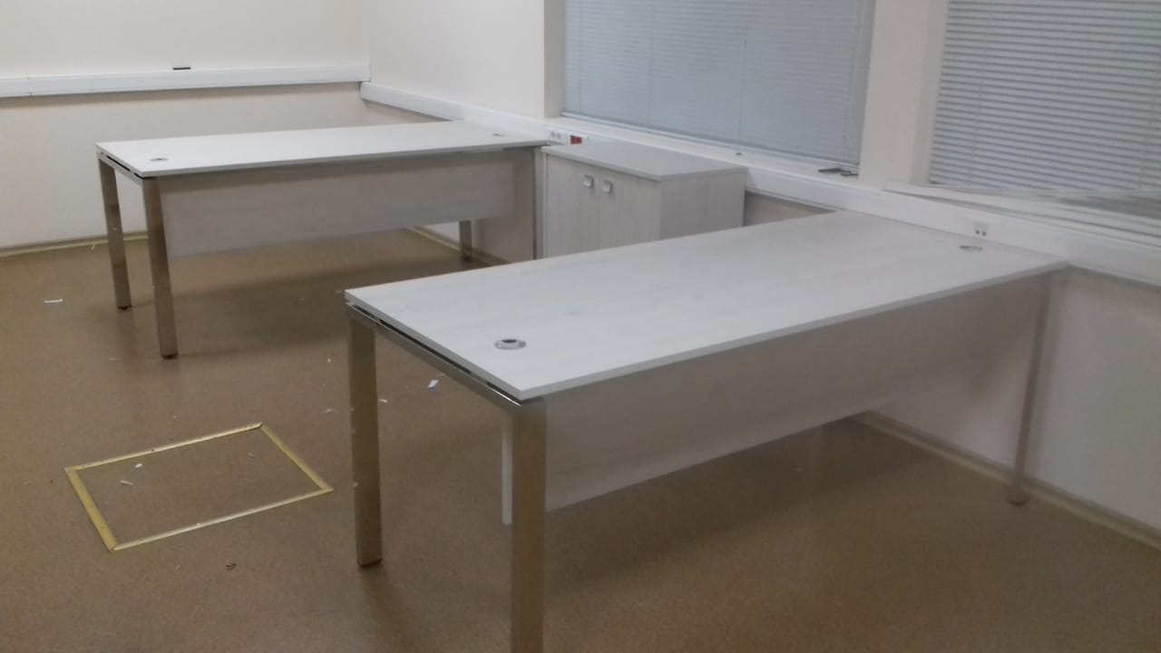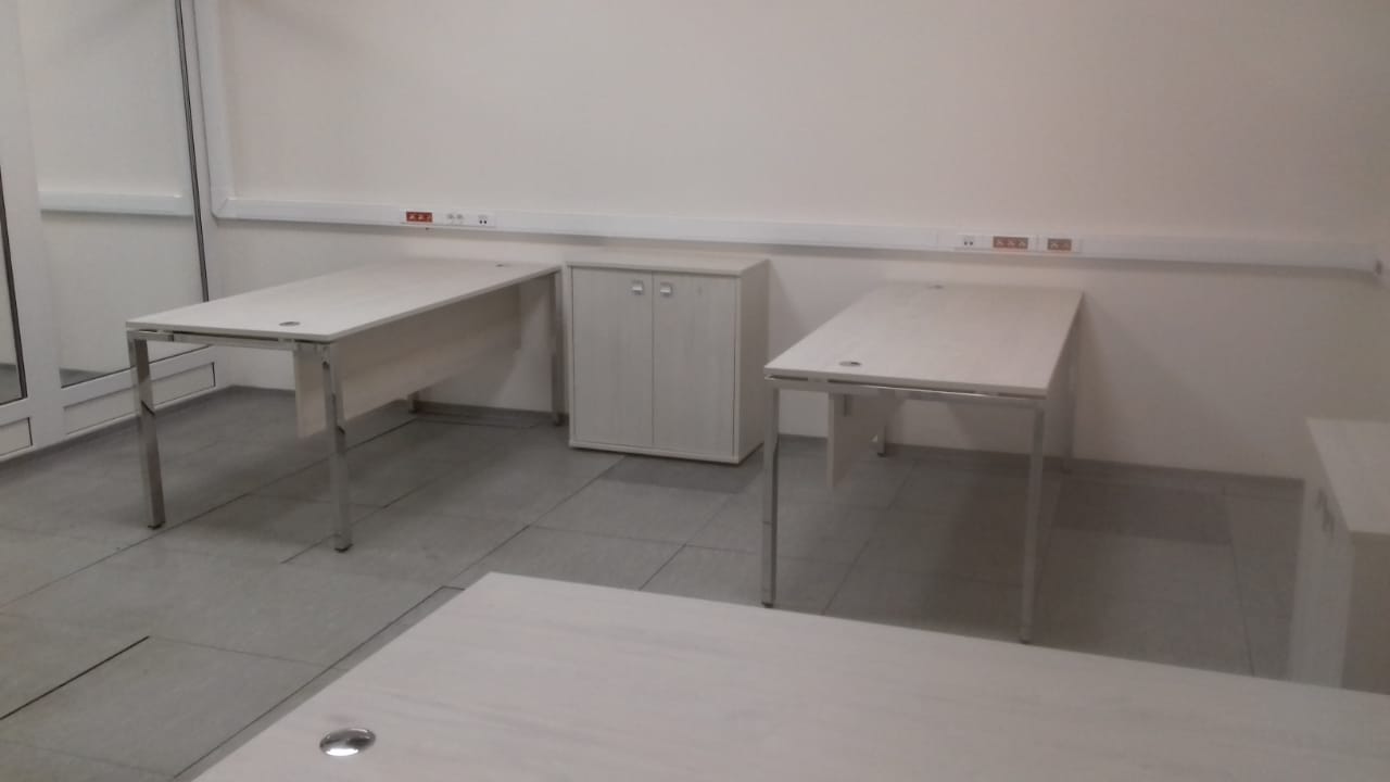 В проекте использованы столы из серии Metal System Direct в цвете "дуб наварра", шкафы и тумбы Style.