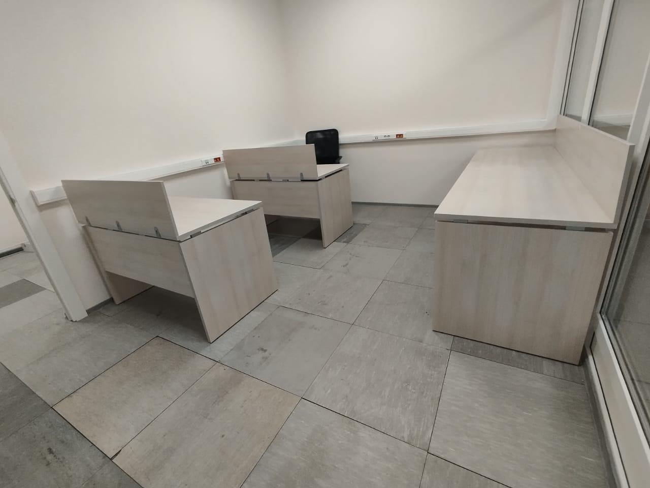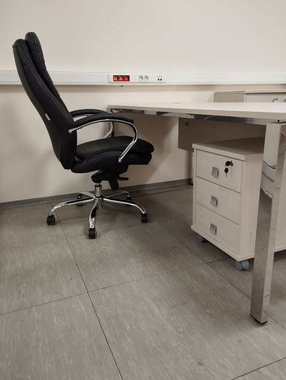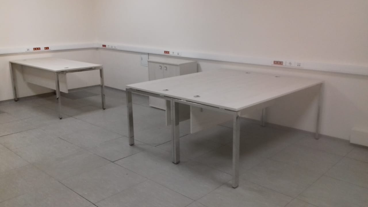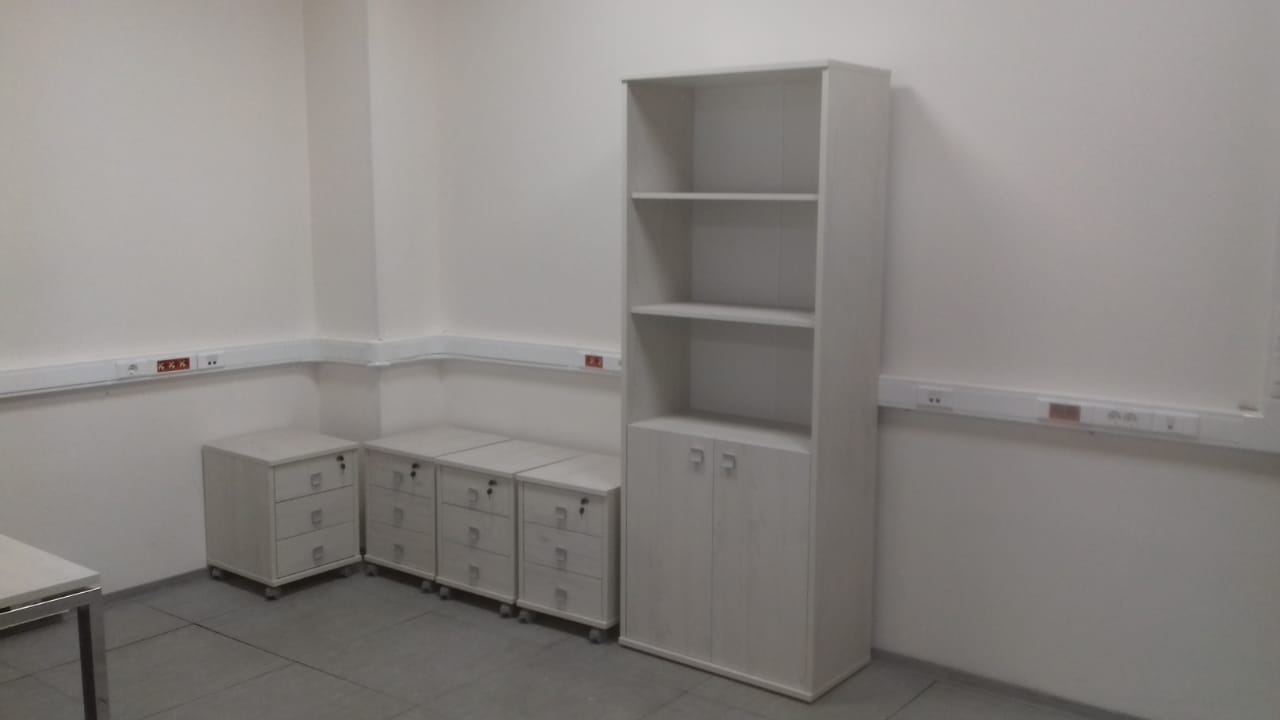 В проекте использованы столы из серии Metal System Direct в цвете "дуб наварра", шкафы и тумбы Style.