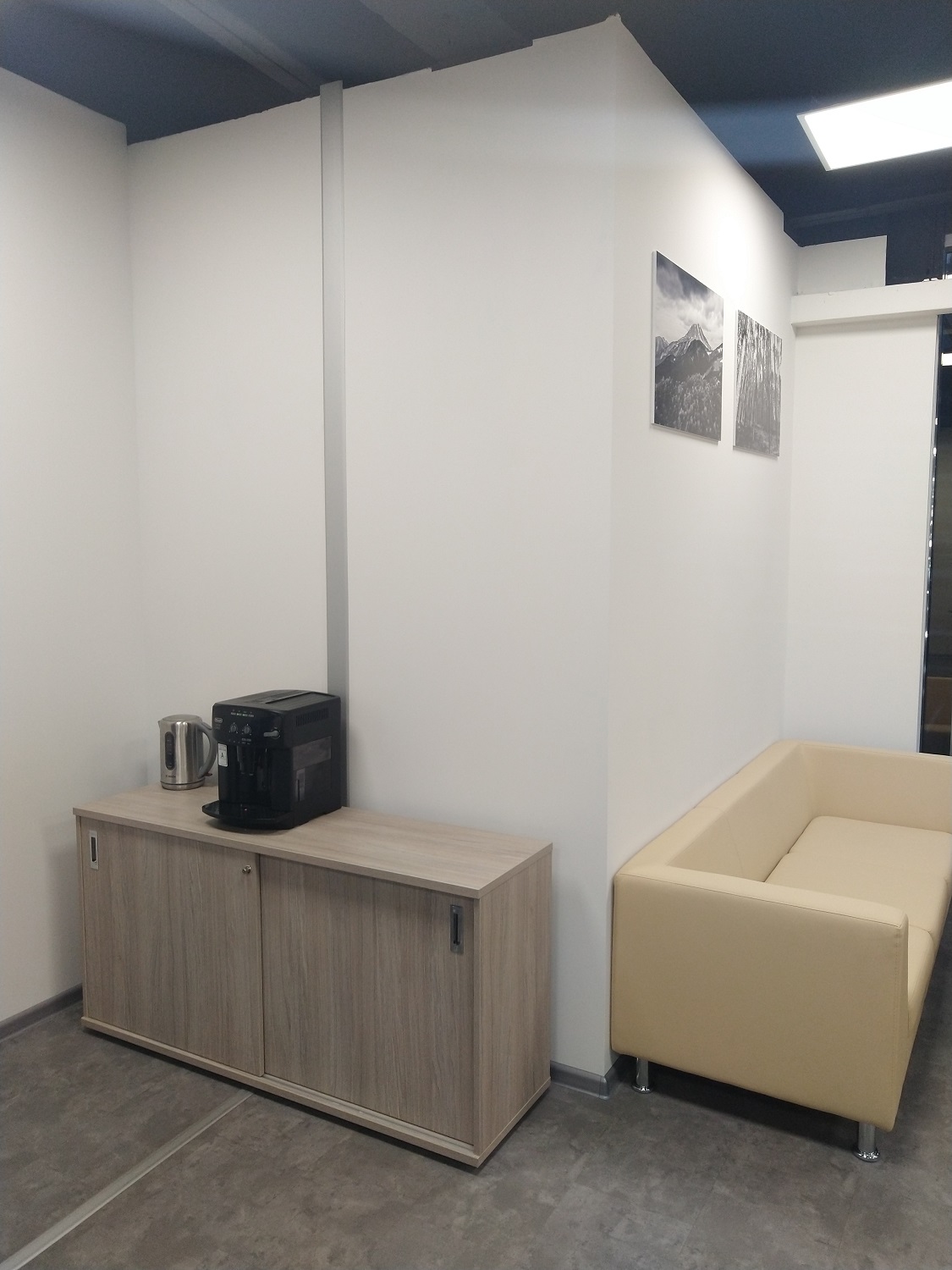 Нам также предстояло обдумать зону ожидания для посетителей и клиентов компании. Для этого мы выбрали мягкие элементы из коллекции Омега-Люкс фабрики Альфа-Мебель. В общем в офисе получилось уютно и комфортно, но стильно и элегантно.