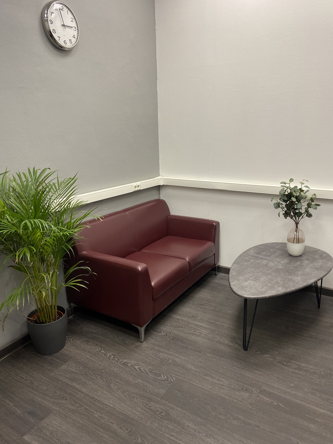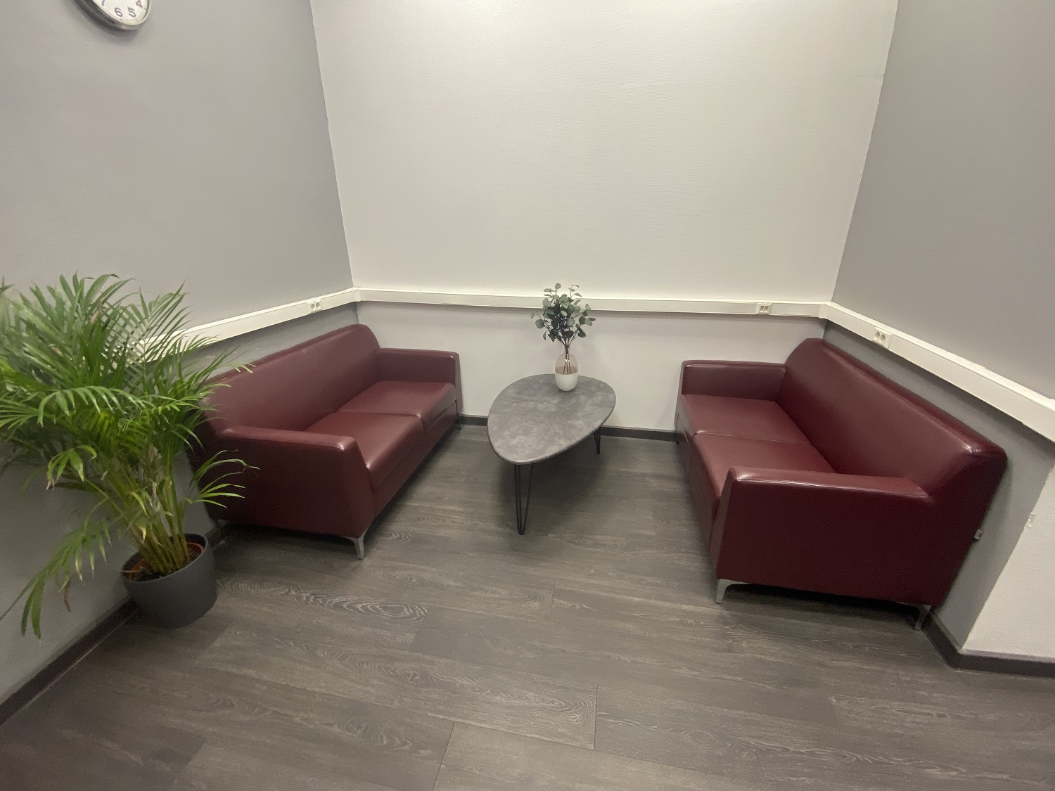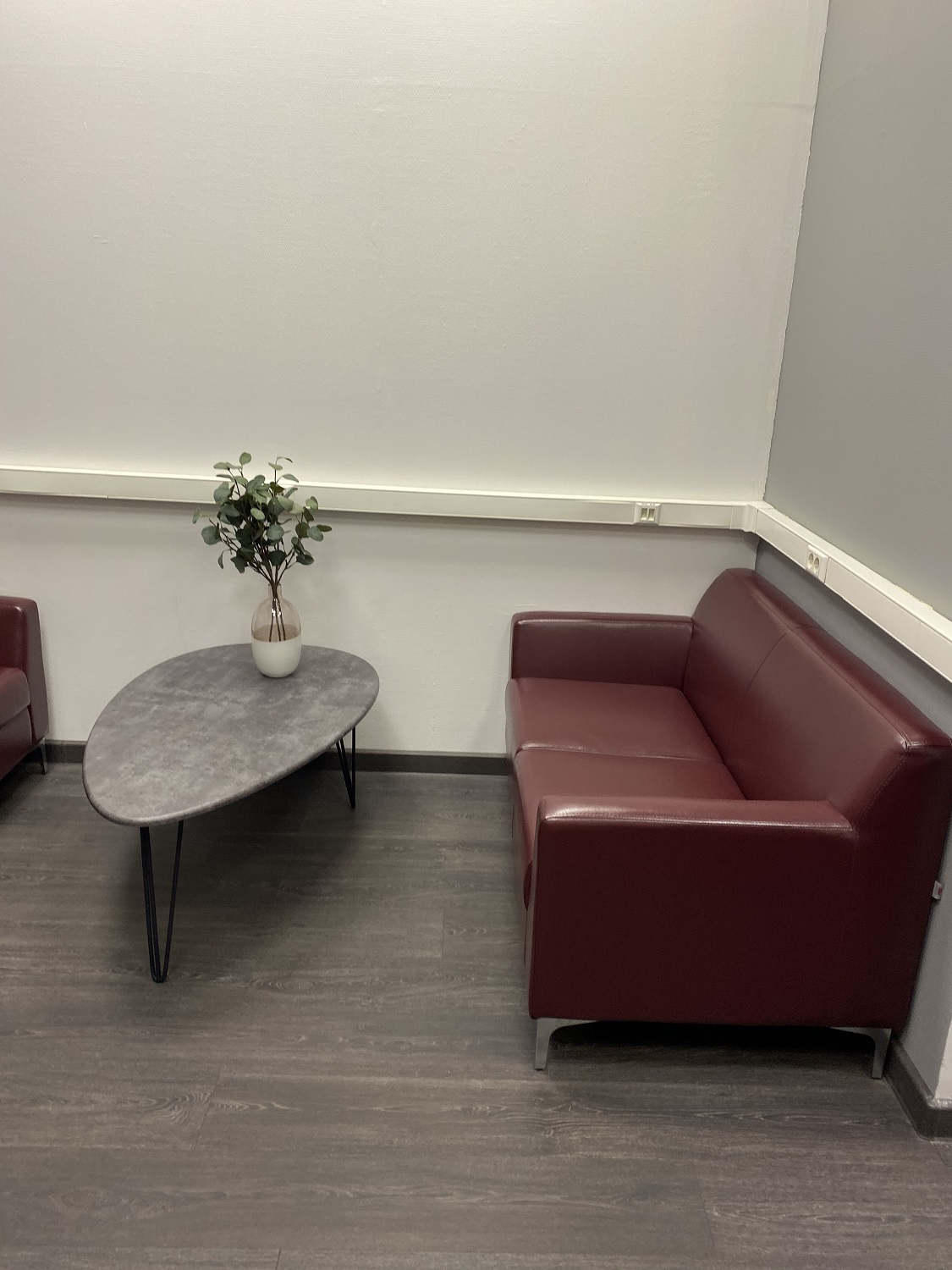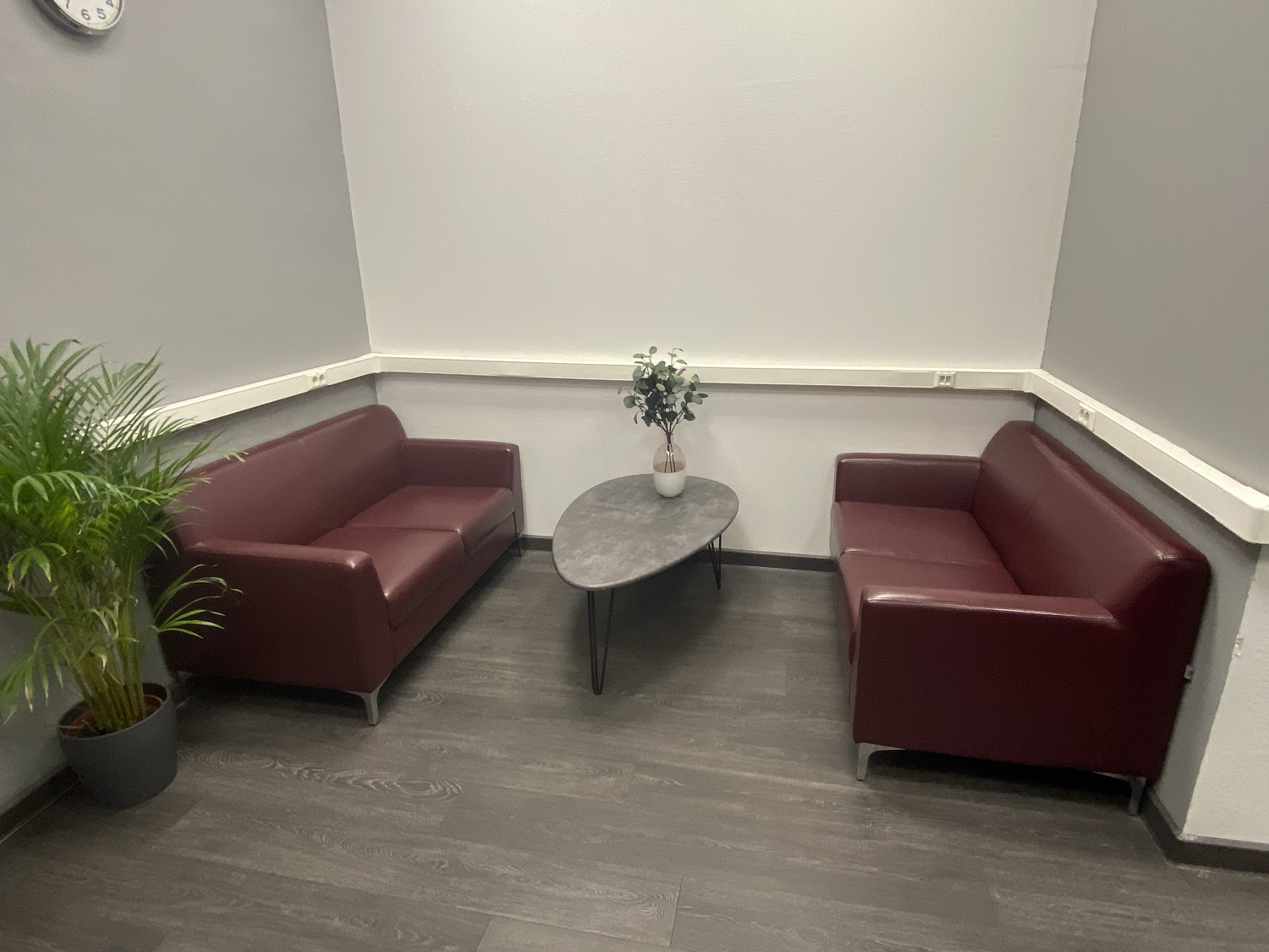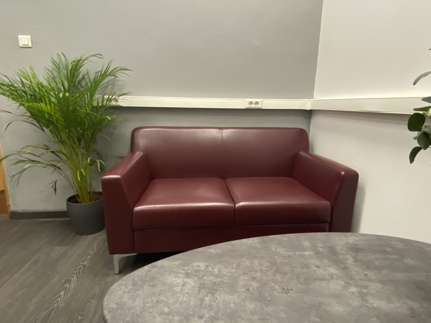 К нам обратилось руководство компании “ЭЛКОД” с просьбой обустроить эту зону для компании. Мы выслушали все их пожелания, посмотрели место, где предположительно будет установлена мебель и принялись за сканирование возможных вариантов. Мы сразу отдали предпочтение в обустройстве данной зоны мягким элементам, но выполненным в строгом классическом офисном стиле. Именно поэтому наш выбор пал на диваны серии СМАРТ в оттенке бордо. Помимо двух диванов, стоящих друг напротив друга, мы установили в этой зоне журнальный стол Шеффилд в оттенке серый бетон. Он придал этой области особого антуража.